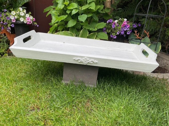 Vintage Holztablett groß weiß mit Ornament