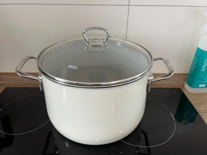 Verkaufe diesen wunderschönen und beinah neuwertigen Topf von Riess in elfenbeinfarben, da er leider für meine aktuelle Wohn- und Küchensituation zu groß ist und so schnell kein Umzug mehr geplant ist. Dient quasi nur als „Deko“, wobei er dabei tatsächlich auch einen guten Job macht. :)