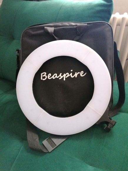 Dieses Ringlicht ist dimmbar und man kann die Wärme des Lichts einstellen. Eine praktische Handyhalterung sowie eine Tasche gibt es dazu. Bei Bedarf gebe ich gerne ein passendes Stativ mit. Das Kabel ist angenehm lang.