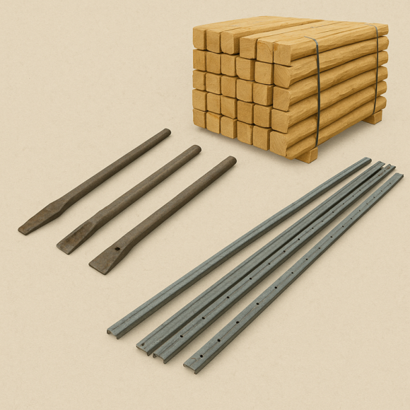 Robinienpfähle, Pfahleisen & gebrauchte Weinbergseisen – gr. Meng