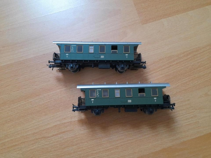 Biete aus Überbeständen die beiden auf den Fotos dargestellten Donnerbüchsen für DB von Roco in h0. Gebraucht aber in gutem bis sehr gutem Zustand. Puffer, Kupplungen, Radsätze, Trittstufen und Geländer vollständig. Bügelkupplungen. Näheres zum optischen Zustand siehe Fotos. Mein Preis beträgt zusammen 10 Euro.