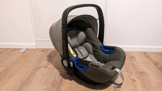 Der Baby-Safe in olivgrün ist in einem gutem Zustand, hat nach zwei Kindern aber auch die ein oder andere Gebrauchsspur.