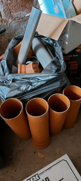 Zum Verkauf steht dieser Rohrkonvolut aus Kg und ht rohren mit winkelstückern, Rohrschellen und Sonderteilen (Durchmesser bis 160mm).