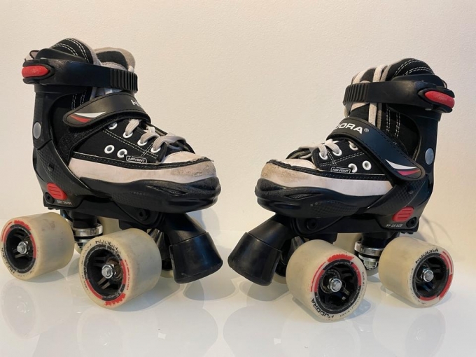 Verkaufe gebrauchte HUDORA Rollschuh Roller Skate in schwarz - hochwertige Rollschuhe aus Nylon - Bequeme Kinder Rollschuhe über 4 Größen (28-31) verstellbar - stilvolle Rollschuhe für Kinder & Jugendliche