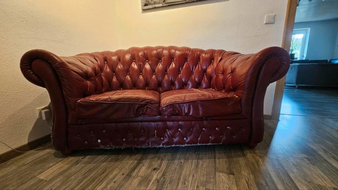 Rote Ledercouch zu verschenken. Nur Selbstabholer natürlich
