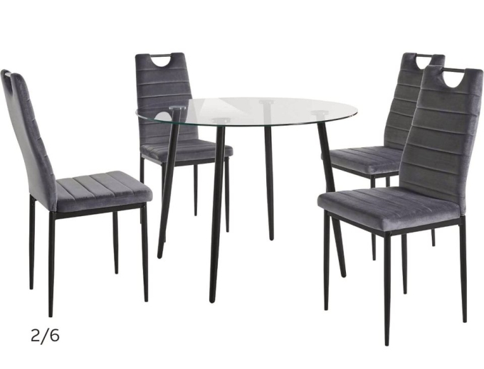 INOSIGN Essgruppe »Danny + Mandy«, (Set, 5-tlg), runder Glastisch, Ø 100 cm und 4 Esszimmerstühlen, Bezug aus Samtstoff (grau). Wurde für 240 bei Otto.de gekauft und für ein halbes Jahr verwendet. Für mehr Bilder bitte anschreiben.