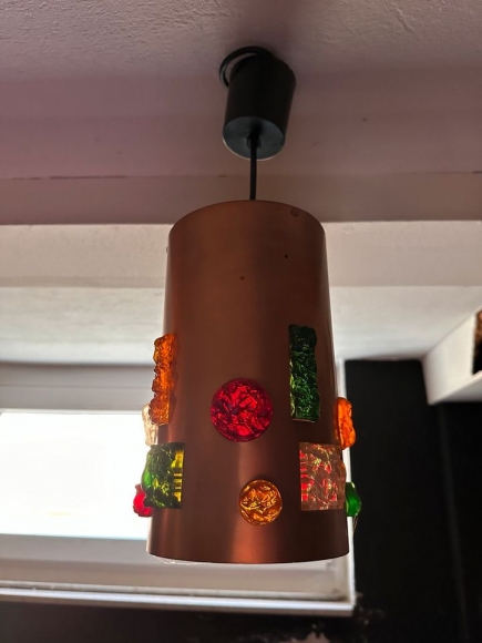 Rustikale Deckenlampe, Lampe mit buntglas, Retrolampe, Partylampe