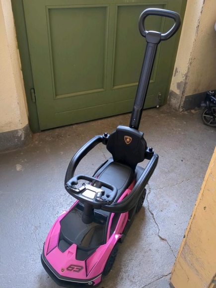 Nur ein paar Hofrunden gefahren. Staufach im Sitz, Fußrasten rausziehbar, Schiebestange und Sitz-Geländer sind abzumachen.