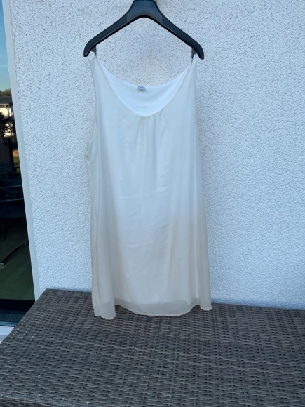 Leichtes, 2 lagiges Sommerkleid in beige. Der Farbverlauf wird nach unten etwas dunkler. Der obere Stoff ist einfließender Stoff.