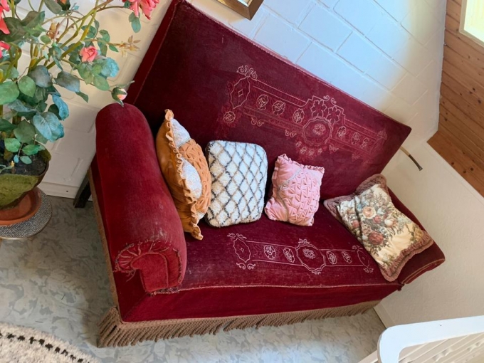 Biete hier ein schönes altes Sammlerstück aus Familienbesitz an. Das Sofa weißt normale Gebrauchsspuren auf.