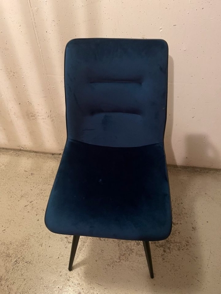 Ich biete hier zwei schöne Samtstühle in Blau mit schwarzen Metallfüssen.