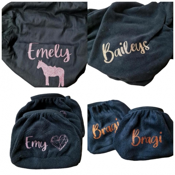 Für die Bedruckung gibt es einige Farben aus denen man wählen kann. Ebenfalls sind Namen möglich, Motive, eigene Logos, Silhouetten des eigenen Pferdes usw ..