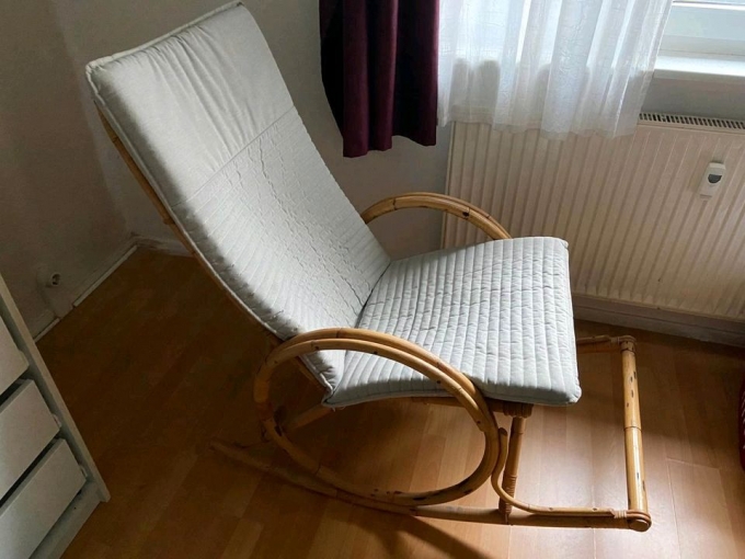 Biete einen Schaukelstuhl aus Korb mit Auflage.