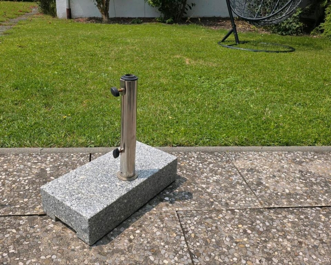 Wir verkaufen einen Granit-Schirmstönder (25 kg) in gutem gebrauchtem Zustand. Selbstabholung in München Moosach.