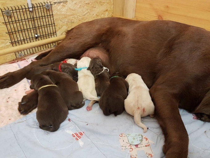 Die Welpen bekommen selbsverständlich eine Ahnentafel, sind alle 14 Tage entwurmt, gechipt, geimpft und erhalten ein Gesundheitszeugnis vom Tierarzt. Die Elterntiere sind umfassend Untersucht. Neben HD und ED Untersuchung, werden viele Gentest bei Laboklin durchgeführt um Labradortypische Krankheiten auszuschließen.
