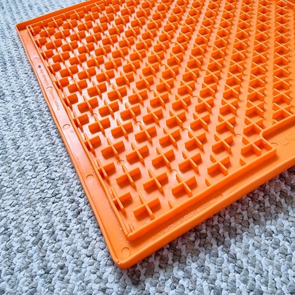 ich gebe die abgebildete Leckmatte in 28x28 cm ab. Guter gebrauchter Zustand, keine Mängel.