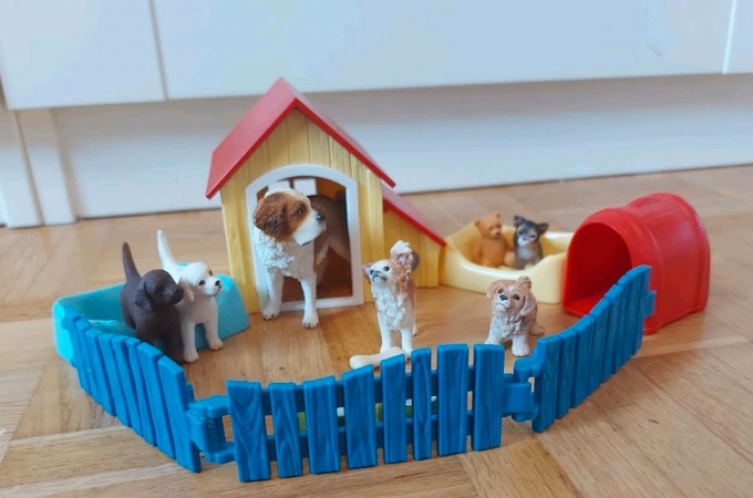 Ich biete meine Hunde-Rasselbande von Schleich an. 6 Hunde inklusive Zubehör, wie Körbchen, Hundehütte und Näpfe (wie auf den Fotos dargestellt).