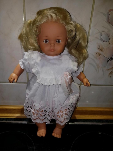 Diese Puppe hat schon ein paar jahre auf dem Buckel. Sie ist aber noch sehr schön und gut erhalten. Sie hat sogar noch einmal wechselsachen. Knie lange Hose und oberteil beides in gleicher Farbe.