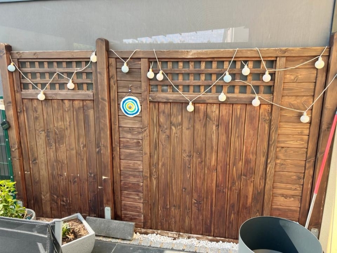 Holz Sichtschutz aus zwei Elementen zu verschenken.