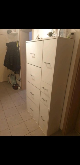 Eine Hälfte für Schuhe die andere Seite ist mit Fächern für sonstigen Stauraum.