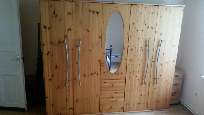 Ich verkaufe einen Kleiderschrank. Er besteht aus Massivholz. Die Breite ist 243 cm. Die Höhe ist 207 cm. Die Tiefe ist 57 cm. Gebrauchsspuren sind vorhanden. Der Zustand ist trotzdessen gut. Er wurde zur besseren Lagerung und für den Transport zelegt.
