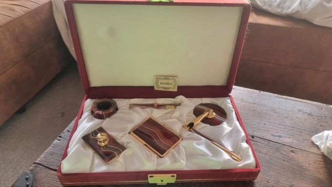 Schreibset Unikat echt Achat mit samtbox Zertifikat