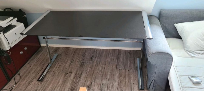 Schreibtisch mit Glasplatte schwarz und Metall-Gestell Chrom