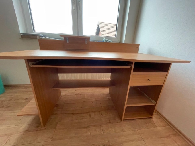 Abzugeben ist ein sehr gut erhaltener Schreibtisch mit diversen Ablagefächern und einer Schublade. Diese sind z.T. ausziehbar.