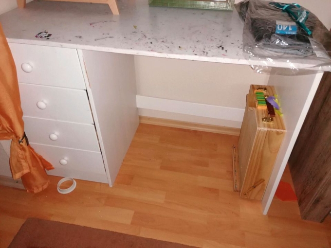 Wir verkaufen unseren Schreibtisch für 5 Euro. Die Schreibfläche wurde bemalt und es sind einige Gebrauchsspuren vorhanden.