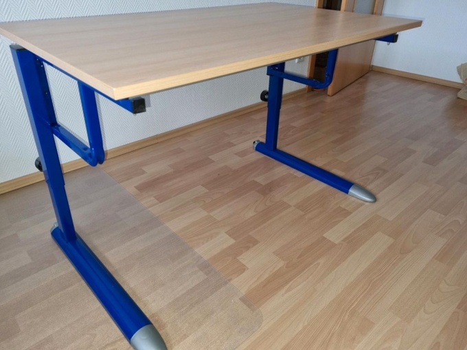 Der Schreibtisch ist 110cm breit und 78cm tief. Er ist in sehr gutem Zustand und seine Höhe kann sogar verstellt werden.