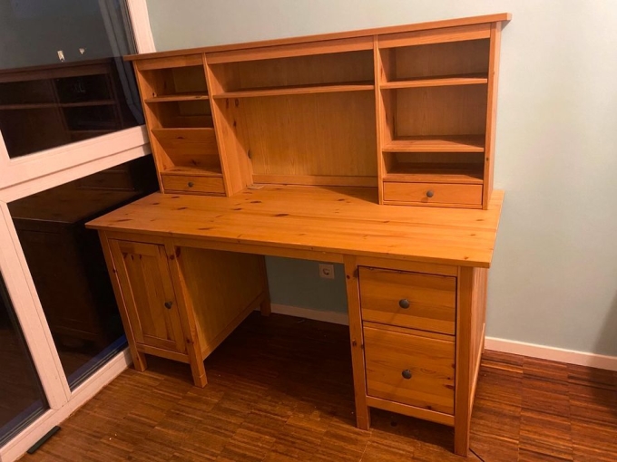 Ich verkaufe den Hemnes Schreibtisch mit Aufsatz von Ikea (Originalpreis: 479€). Ich habe ihn seit März 2020. Er ist super in Schuss und hat nur minimale Gebrauchsspuren. Der Schreibtisch hat die Maße B155 x T65 x H137cm. Material Vollholz.