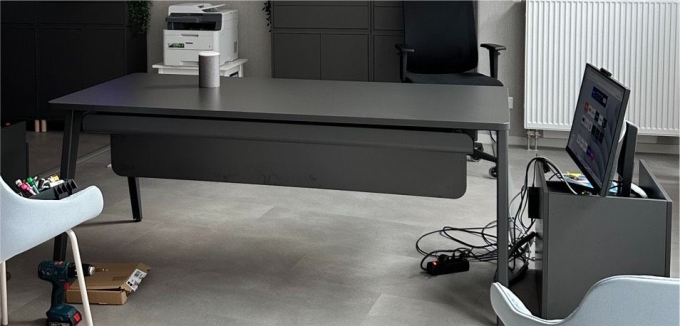 Hier wird ein Bürotisch Anthrazit in Komplett-Set verkauft.