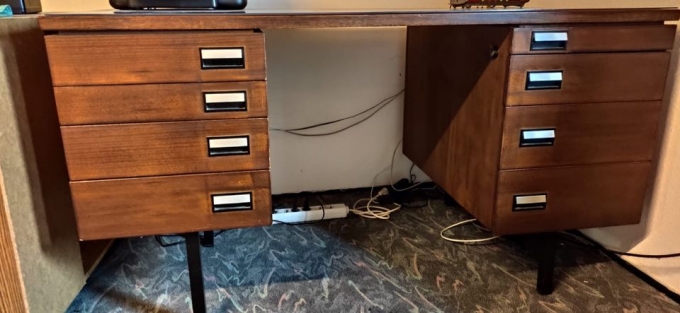 Nur Abholung und Selbstabbau nach Absprache bis Freitag 23. 02. Der Schreibtisch steht im Dachgeschoß und muss runtergetragen werden.