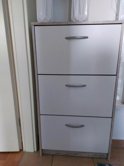 Biete hier 2x einen Schuhkippschrank an. Der eine hat eine kleine Macke an der einen Ecke (siehe Foto). Würde beide für 20€ verkaufen.