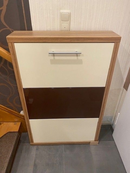 Maße: 74 cm x 19 cm x 127 cm. Fronten aus Echtholz, lackiert