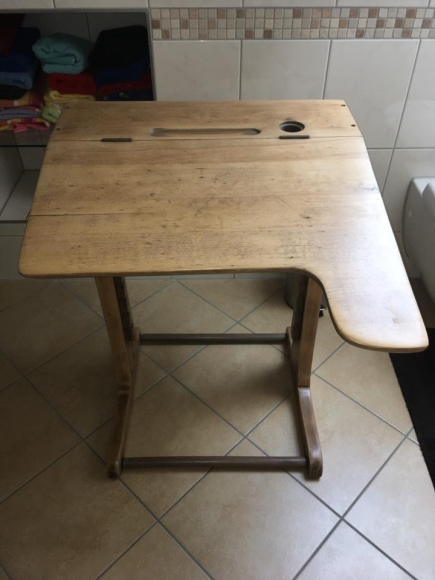Unterhalb der Schreibplatte befindet sich ein Stauraum für Schulsachen, oben eine Ablage für Stifte und ein Ausschnitt für das Tintenfass❗️