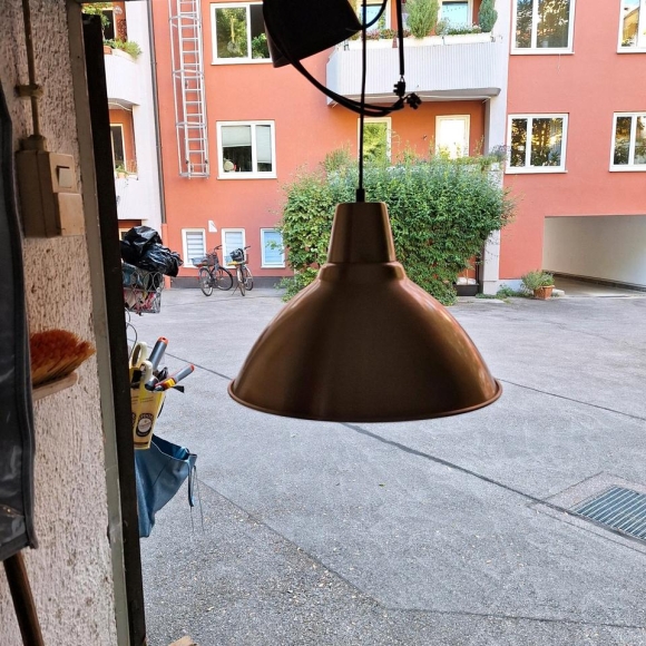 Die Hängelampe hat eine Länge/Höhe von 25 cm und einen Durchmesser von 38 cm
