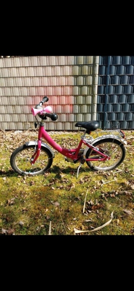 Zum Verkauf steht ein schönes, gut erhaltenes 18-Zoll-Mädchenfahrrad der Marke Puky in auffälligem Pink.