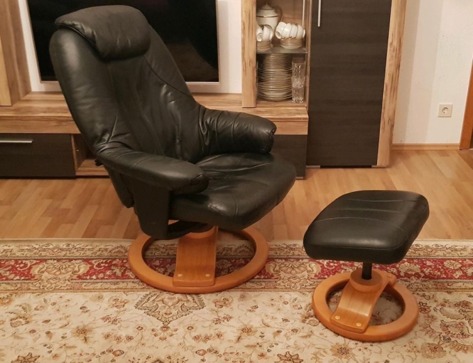 Schwarze Sessel Leder mit hocker
