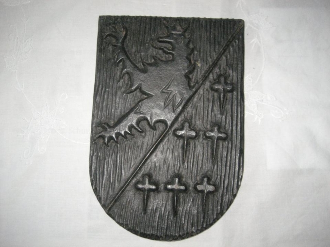 Verkaufe eine wunderschöne, schwere Gussplatte mit Wappen, darin sind 6 Schwerter abgebildet, Gewicht über 3150 Gramm, Höhe 30 cm, Breite 20 cm, Tiefe ca. 2 cm, vermutlich stammt das Wappen aus Frankreich, wie abgebildet für nur 29 Euro.