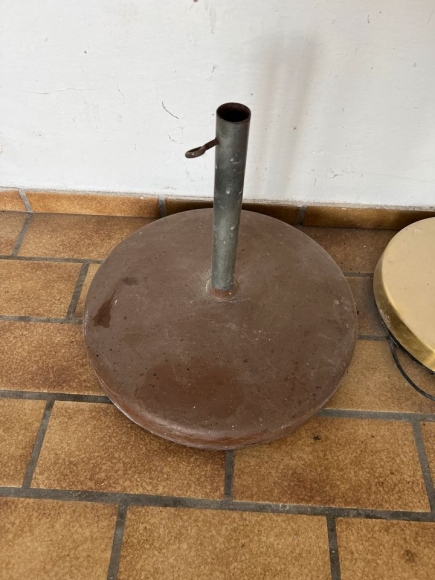 Schwerer Schirmständer aus Beton.