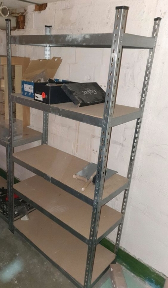 Gebe die Schwerlastregale, Schreibtisch, Kreissäge, Monitor und Kleinigkeiten ab.