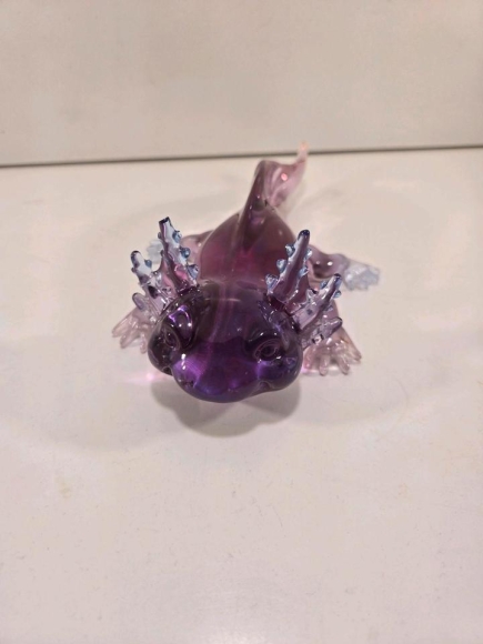 sehe schöner großer Axolot ca. 19 cm lang in den Farben Rot, Blau, Lila und Weiß aus Epoxidharz. Sauber verarbeitet und ein echter Hingucker.
