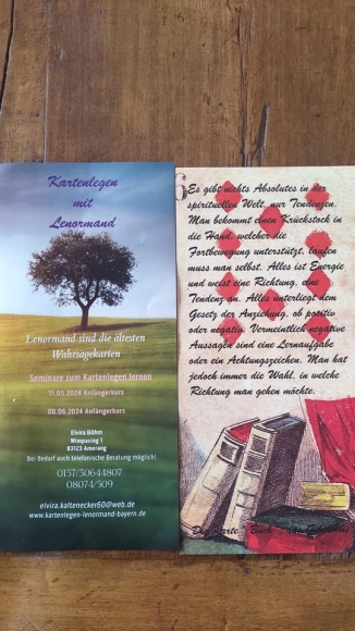 Hallo ihr Lieben, hier nochmal meine Kurstermine zum Kartenlegen lernen für Anfänger. Also wer Zeit und Freude hat dabei zu sein, kann sich bei mir melden. Herzlichst Elvira
