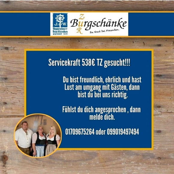 Servicekraft: Gäste bewirten, Leergut verräumen Getränke auffüllen, Aschenbecher leeren usw.