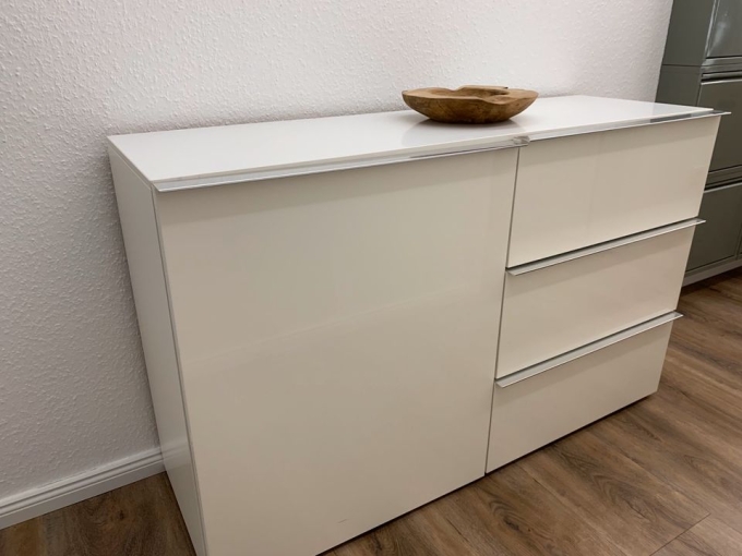 Wegen Umzug steht zum Kauf ein Sideboard von Loddenkemper Modell Media 3000 in Lack-weiß / weiß.