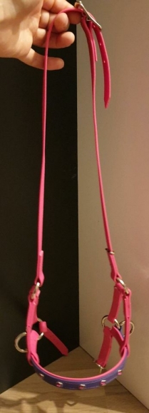 Ich verkaufe hier mein Sidepull von Flottur. Die Größe ist COB. Das Sidepull ist ais Biothane in der Farbe Pink/Lila, mit glitzer Steinen.