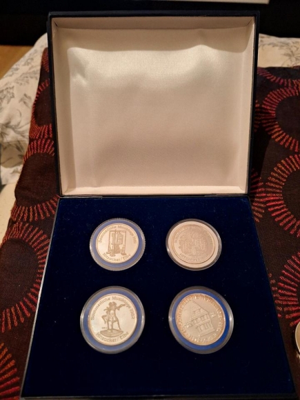 Ich biete ein 4er Set Silbermedaillen mit je von die Sommwrliche Musiktage aus reinem Feinsilber ingesamt 44 gr in der original Box.