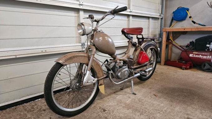 Alle Teile die nicht mehr verbaut wurden sind vorhanden. Ein zweiter Motor ist vorhanden (dreht), ebenso wie ein zweiter Vergaser.