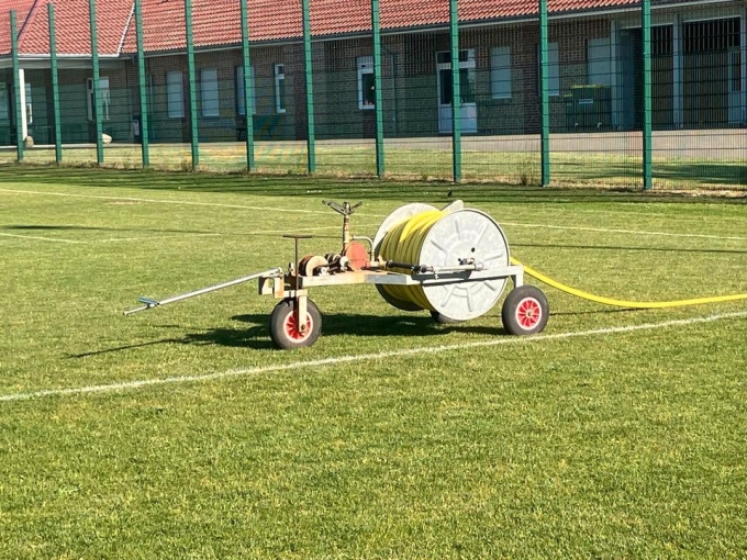 Ich biete ein robustes, selbstfahrendes Sportplatz Regenmobil zum Verkauf an. Es ist ideal für die Bewässerung großer Sportflächen und Gärten. Hier sind die Details: